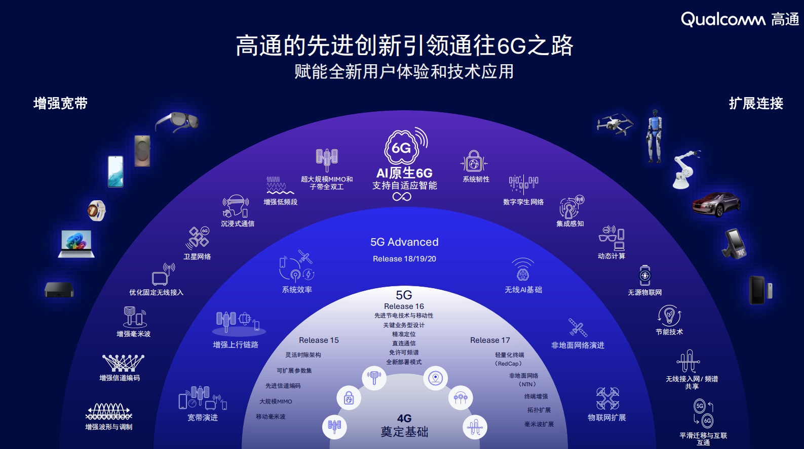在6G发展上,高通也给出了清晰的发展线路,高通表示,6G将成为面向个人AI、物理AI与智能体AI的AI原生连接与感知基础设施。6G作为面向下一个十年及未来的创新平台,将助力释放AI的全部经济潜能,高通正推动6G成为面向AI的平台。