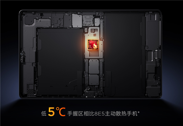性能方面,拯救者平板Y700五代搭载第五代骁龙8至尊版芯片,搭配LPDDR5T满血内存与UFS 4.1 Pro满血存储,安兔兔综合跑分突破453万分,稳坐目前安卓小平板性能榜首。为保障性能持续释放,新机配备17353mm²VC均热板,升级第三代乾坤散热架构,采用中置散热设计让热源远离握持区,官方数据显示,其散热功率、冷凝液流速、容量分别提升20%、10%、40%,大幅提升长时间游戏的握持舒适度。