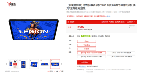 3月6日,联想拯救者正式官宣,拯救者平板Y700五代将于3月18日19:00发布,新品现已在联想官网开启预约,推出12GB+256GB、16GB+512GB、24GB+1TB三档存储版本。作为系列史上性能最强机型,该机全方位堆料升级,堪称安卓性能小钢炮。