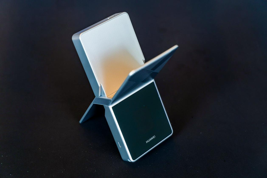 闭合状态下,机身呈现简约流畅的一体化轮廓,符合华为高端产品的极简美学,便于收纳;展开后呈X形态,不仅成为极具辨识度的视觉符号,更能优化天线辐射角度,进一步提升信号强度。