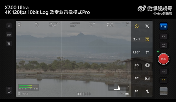 作为本次迭代的核心亮点,X300 Ultra 从硬件、交互、后期三大维度实现全方位突破,彻底改写手机视频创作的行业规则。视频能力全面升级,其中最受关注的便是全焦段 4K 120fps 10bit Log 录制,相比前代 X200 Ultra 的全焦段 4K 60fps Log,这次升级直接拉满创作上限,三颗镜头均实现无差别高规格录制,没有焦段遗憾、没有画质遗憾,更没有帧率遗憾,拍出来的视频画面丝滑流畅,为后期剪辑预留了充足的画质余量。