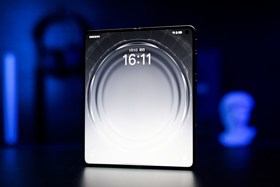 无论正面直视还是侧光下观察,OPPO Find N6的内屏几乎看不到任何折痕,指尖滑动时毫无凹陷感,即便连续快速开合100次,折痕也不会加深,完全媲美直板屏的平整体验。