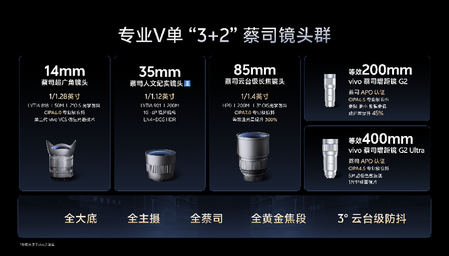 此外,“专业V单”还能望得更远。自2025年vivo开创性率先发布增距镜后,受到了行业的一致认可和跟进。而今,第二代增距镜又有巨大突破。2.35x等效200mm增距镜G2拥有蔡司APO认证,防抖等级达到CIPA6.5,成片率提升了45%。此外,与上一代相比,它的重量仅为73%,长度仅86%,十分方便携带。