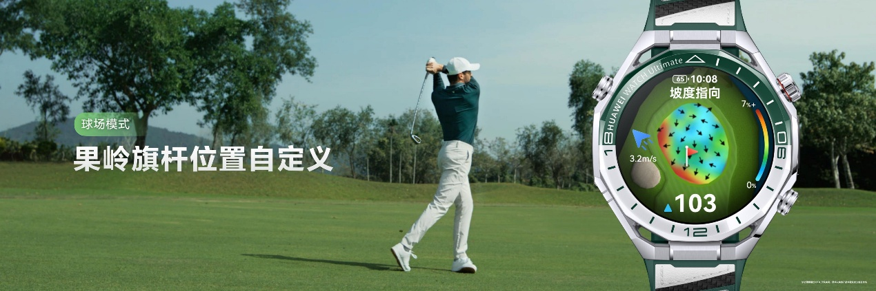 进入球场模式,HUAWEI WATCH Ultimate 2非凡探索化身可靠的场上助手,它新增的果岭旗杆自定义功能,可手动调整插旗位置,让球手获得更精准的击球策略;其果岭视图实时旋转功能,以第—人称视角动态旋转,让球手减少脑内转译,更加准确地理解果岭坡度、推杆路线及球与旗杆的相对位置,从而显著降低误判,让每一次击球都更加从容自信。