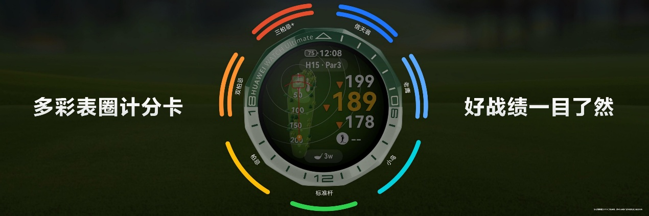 球局过程中,HUAWEI WATCH Ultimate 2非凡探索新增多彩18洞表圈计分卡,球手可通过冷暖色调不同的色条,实时尽览每一洞的成绩,轻松将全场表现了然于心。此外,球手的精彩战绩截图可随时与朋友分享,让每一次进步都有迹可循。