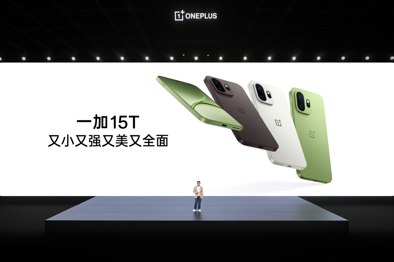 2026 年 3 月 24 日,一加全新小屏旗舰一加 15T 正式发布。作为一加数字旗舰系列的最新力作,一加 15T 在 6.32 英寸的精巧机身下,实现性能、游戏、续航、影像及系统等维度的全面跃升。一加 15T 搭载第五代骁龙 8 至尊版移动平台、自研电竞网络芯片 G2 以及灵犀触控芯片,配合独家自研新一代「风驰游戏内核」与冰河散热系统,实现行业唯一小屏手机 165 超高帧游戏体验。一加 15T 配备 7500mAh 超巨量冰川电池+100W 超级闪充+50W 无线闪充的豪华续航回血组合,随时随地快速补能。一加 15T 搭载 5000 万像素 3.5 倍潜望长焦镜头和 LUMO 凝光影像系统,拍人拍景都好看。一加 15T 还内置全新 ColorOS 16 系统,带来多项高效的 AI 功能与全新的游戏助手体验。此次一加 15T 带来「治愈白巧」、「松弛抹茶」和「纯粹可可」三款配色。