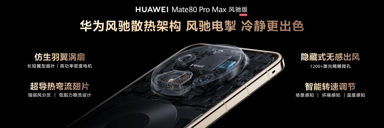 从产品命名上不难看出,华为Mate 80 Pro Max风驰版最大的更新就是散热与性能,手机搭载的风驰散热架构,以主动式风冷方案将散热效能推至行业新高,彻底解决高负载场景下的温控难题。