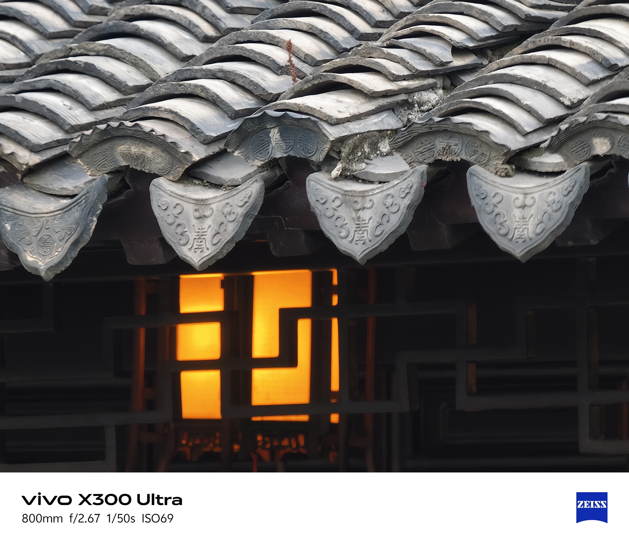用它拍摄前方距离十几米的建筑,即使拉到1600mm焦段,依旧能清晰地还原瓦片的细节,且没有明显的AI痕迹。