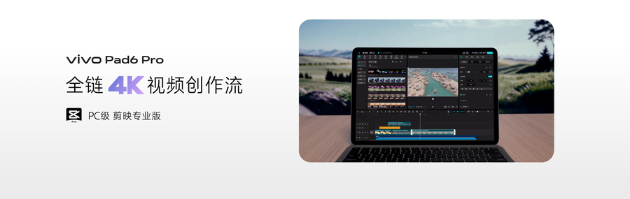 在视频内容创作上,vivo Pad6 Pro依托多设备协同能力,打通从拍摄到后期的一体化创作链路,手机拍摄的4K素材可无损传输至平板进行精细化处理,实现创作流程无缝衔接,全面释放专业级创作生产力。搭配手写笔Pencil3与适配的剪映专业版,在vivo Pad6 Pro上,可高效完成4K素材编辑,无论是多轨道剪辑、特效添加还是素材拼接,都能在13.2英寸4K原彩屏上流畅呈现。画面细节清晰可见,色彩还原精准自然,为视频调色、画面裁切等专业操作提供可靠基础。得益于旗舰级性能平台的加持,素材导入、预览、导出等过程更加顺畅,还能将4K超高清内容上传至社交平台,一站式输出更高品质的作品,满足专业创作者对画质与效率的双重要求。