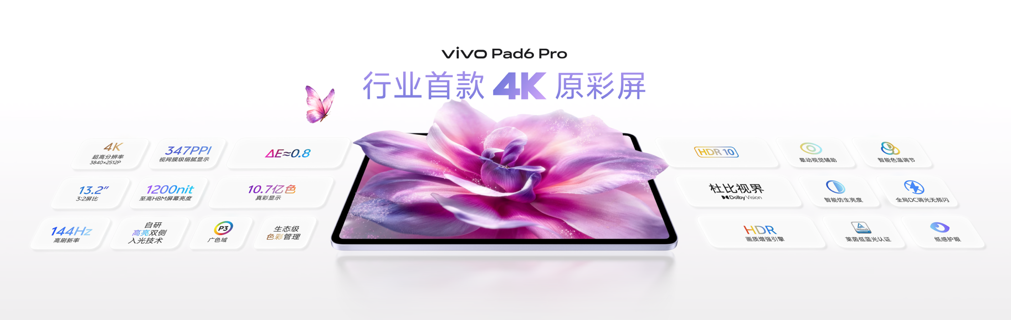 vivo Pad6 Pro搭载13.2英寸4K原彩屏,支持杜比视界、144Hz高刷新率,像素密度高达347 PPI,融合多项专业显示技术,带来更丰富的画面细节、更真实的色彩还原和更细腻的HDR显示效果。在色彩表现方面,vivo Pad6 Pro依托生态级色彩管理体系,实现专业显示器级的原彩高色准,让用户在编辑、上传、预览等每一个环节中,都能获得高度一致的色彩还原效果,满足创作者对真实画面的严苛要求。