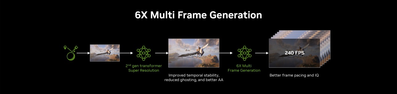 作为本次GDC NVIDIA发布的核心重磅内容,DLSS 4.5于3月31日随全新NVIDIA App测试版正式首发上线,核心新功能面向GeForce RTX 50系列显卡用户开放,需搭配GeForce Game Ready 595.79 WHQL及以上版本驱动使用,正式版将于后续推送。本次DLSS 4.5更新实现了多项技术层面的关键突破,其中最受关注的动态多帧生成功能,被业内称为显卡的“自动变速箱”。该功能打破了此前固定帧率生成倍率的限制,可根据显示器刷新率与游戏实时负载,在1至6倍区间内智能调节帧生成倍率:在高负载场景下自动提升倍率补帧,杜绝画面掉帧卡顿;低负载场景下精准降低倍率,最大限度保障游戏操控响应速度,最终实现帧率、画质与响应速度的完美平衡,专为120Hz/240Hz高刷新率显示器打造。