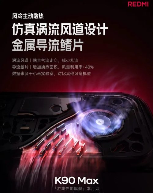 4月7日,REDMI K系列全新旗舰K90 Max正式官宣,将于本月正式发布。这是REDMI K系列首款Max机型,同时也是小米旗下首款搭载主动风冷散热的手机,由原K90至尊版更名而来.