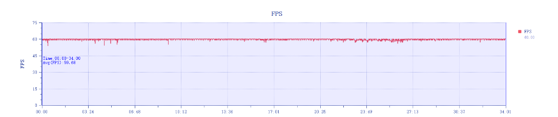 在游戏测试中,运行《崩坏:星穹铁道》最高画质+60帧模式,半小时黄金时刻跑图平均帧数达到了59.68FPS,整个游戏过程还是相当流畅的。