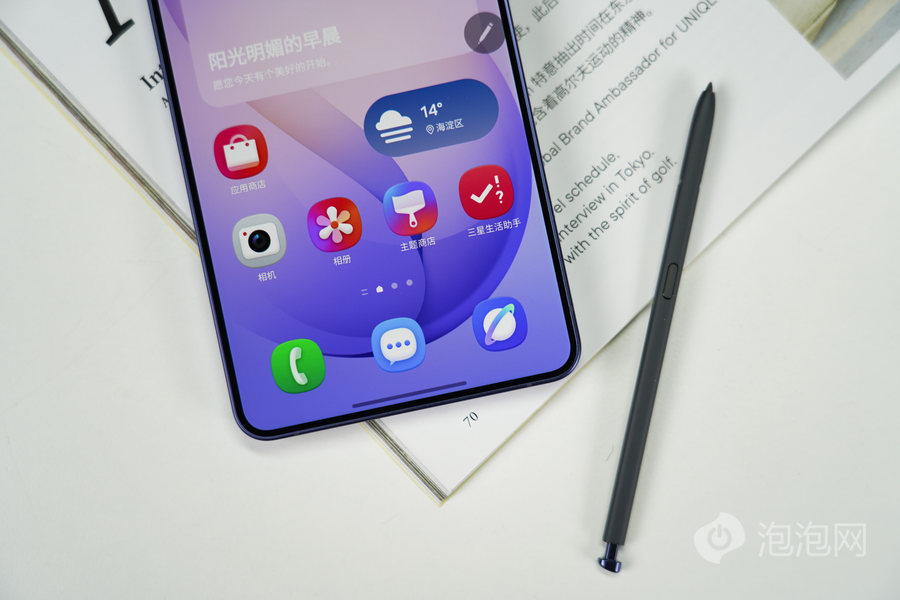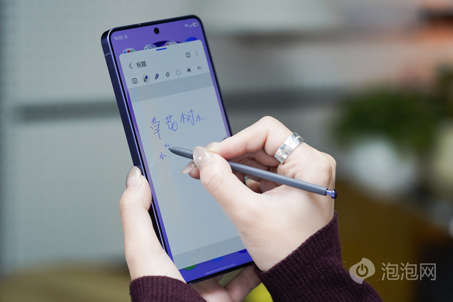 机身底部左侧为S Pen插槽,这支手写笔支持高精度压感与低延迟响应,而且笔尖在书写的时候有一定的阻尼感,不会打滑,接近真实纸张的书写体验。