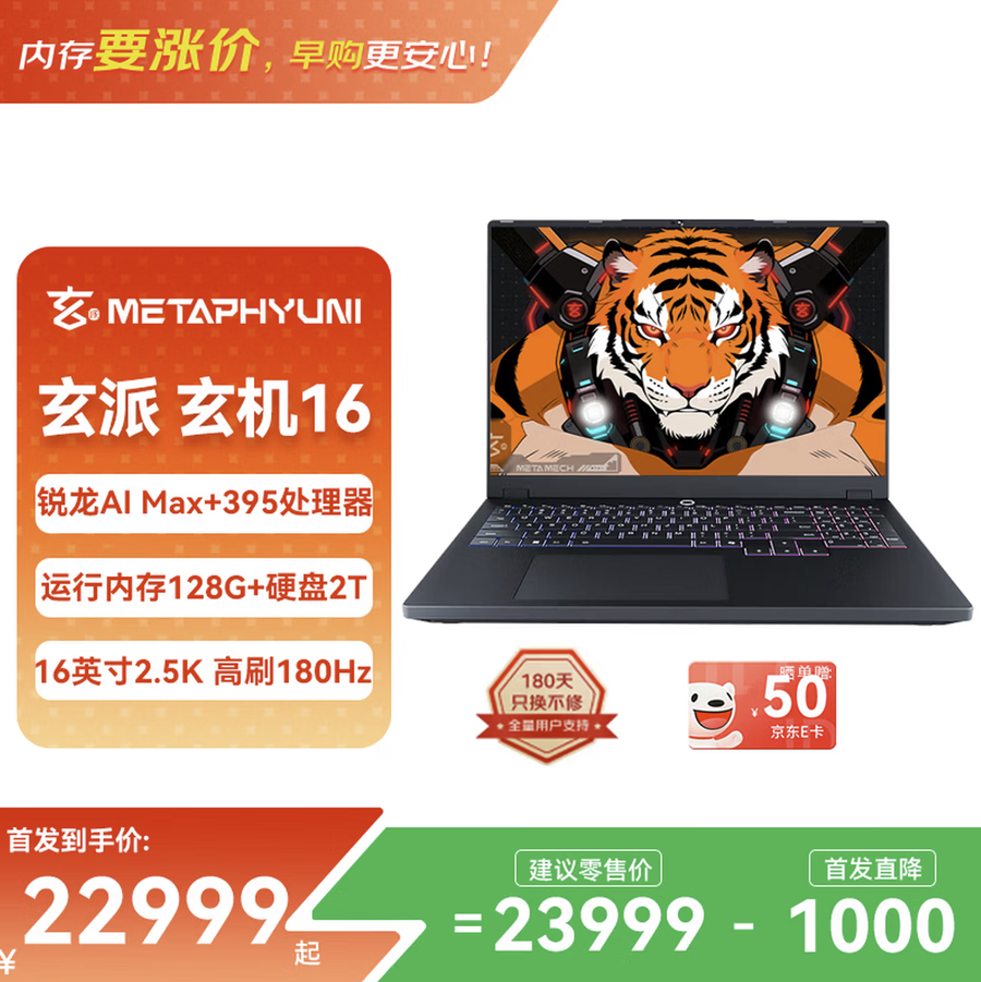 玄派近日正式在电商平台上架玄机16 2026款高性能全能本,该机主打极致AI算力与越级核显性能,搭载AMD最新旗舰级Ryzen AI Max+ 395处理器,配备128GB超大高频统一内存与2TB高速固态,目前已开启预约通道,官方定价22999元。