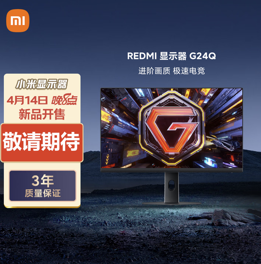 同期上架的REDMI 23.8英寸显示器 G24Q目前已登陆京东平台,产品定价749元,将于4月14日正式发售,主打2K 180Hz核心规格,瞄准入门级24英寸电竞显示器市场。根据商品页公布的完整规格信息,该机型号为P24QEA-RG,机身配色为黑色,采用23.8英寸IPS技术面板,为16:9比例的直面平面屏设计,屏幕分辨率达到2560×1440 2K标准,刷新率180Hz,GtG响应速度1ms,静态对比度1000:1,峰值亮度400尼特,支持HDR400显示标准,能效等级为二级,产品净重2.5kg,机身尺寸为长539mm、宽442mm、高173mm。该机标配普通支架底座,机身支持VESA标准壁挂,包装清单内包含显示器主机、底座(含支架)、DP 1.4线、螺丝套件、说明书、电源适配器等完整配套内容。接口配置上,该机配备2个DP 1.4接口、2个HDMI 2.0接口、1个3.5mm音频接口以及DC IN电源接口,可充分满足PC主机、游戏主机等多设备同时接入的使用需求;售后服务方面,这款产品提供3年质保+3年上门的售后保障,进一步降低用户的使用顾虑。