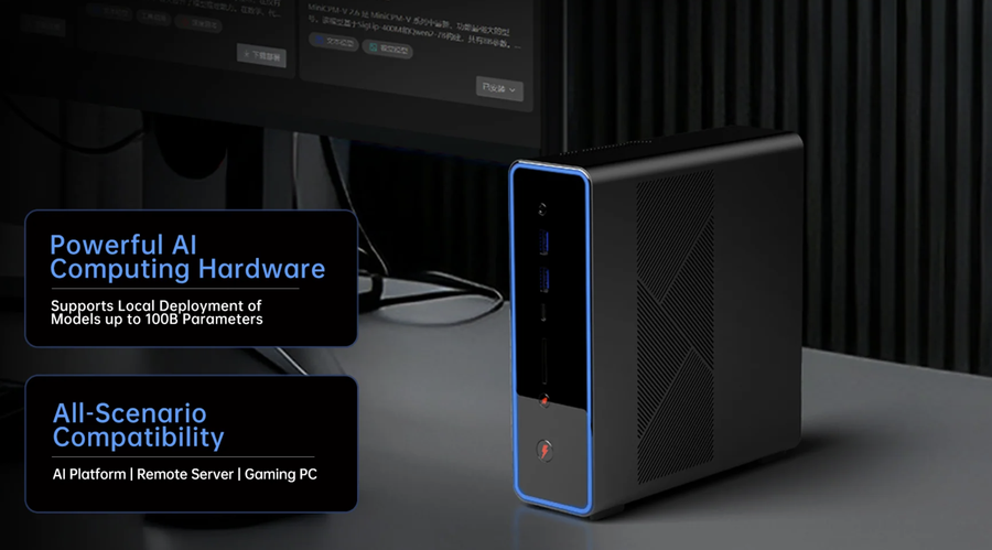 作为一款专为AI应用打造的工作站,其搭载了目前AMD最新的移动端旗舰处理器——Ryzen AI Max+ 395。该处理器基于Zen 5架构打造,配备16核心32线程,最高加速频率可达5.1 GHz,总缓存容量达80MB,提供强大的通用算力基础该处理器集成了基于RDNA 3.5架构的Radeon 8060S核显,拥有40组CU,图形性能足以媲美移动端独立显卡;同时,其内部还集成了NPU,可单独提供50 TOPS的AI计算性能,形成强大的“CPU+GPU+NPU”异构算力。针对AI大模型对内存带宽和容量的极高要求,ONEXStation为处理器配备了统一的128GB四通道LPDDR5X-8000内存,这一配置使其能够支持在本地部署高达100B(百亿参数)级别的AI模型。存储方面,机身内部提供了双PCIe 4.0×4 M.2 2280插槽,最高支持两条4TB固态硬盘同时使用,彻底消除存储焦虑。为了应对不同工作环境的需要,ONEXStation支持三种工作模式,设定功耗分别为55W、85W和120W,用户可在静音办公与极限性能释放之间灵活切换。
