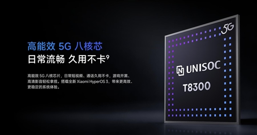 核心性能方面,REDMI R70m搭载紫光展锐2025年3月发布的T8300 5G芯片,该芯片采用6nm制程工艺,拥有八核架构,由2个A78大核与6个A55小核组成,配合Arm Mali-G57 MC2图形处理器,在保持出色能效比的同时,可轻松应对社交软件、影音播放等日常应用,安兔兔跑分突破51万,能效较上一代提升28%,兼顾性能与功耗平衡,同时支持5G NR NTN卫星通信技术。系统方面,该机预装最新的澎湃OS3操作系统,进一步优化交互体验,操作更流畅便捷。