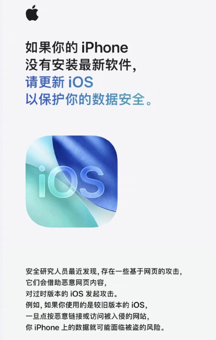 苹果官方今天发布了重要信息,提醒iPhone用户尽快更新系统,以防止旧版本iOS面临的数据被盗风险。近期,有安全研究人员发现某些恶意网页内容专门针对过时的iOS版本发起攻击,一旦用户点击这些恶意链接或访问被入侵的网站,个人数据可能会被盗取。对此,苹果迅速展开调查并发布了软件更新,以修复相关漏洞并阻断潜在攻击。