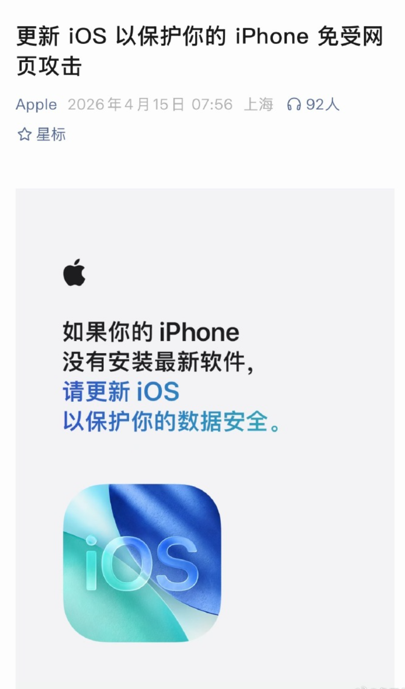 对于使用iOS 13或iOS 14的用户,苹果建议必须升级至iOS 15及以上版本才能获得有效的防护。此外,从4月1日起,iOS 18.7.7也向更多设备推出,开启自动更新的用户可以自动获得安全保护。苹果还指出,Safari浏览器默认启用的安全浏览功能能够自动阻止识别出的恶意URL域,进一步增强用户的安全性。