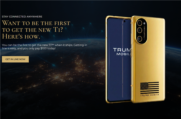 Trump Mobile官网近日进行了全面改版,正式展示了全新的特朗普T1手机外观。这款手机整体采用金色机身,后盖上原本巨大的“T1”字样已经被移除,取而代之的是醒目的美国国旗标识,突显了其爱国主题。