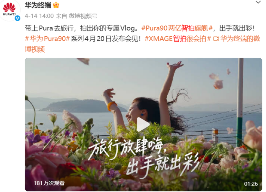4月16日,华为正式宣布易烊千玺成为华为Pura 90系列全球代言人,这不只是影像王者和青年影帝的强强联手,也是两个志同道合的灵魂的双向奔赴。