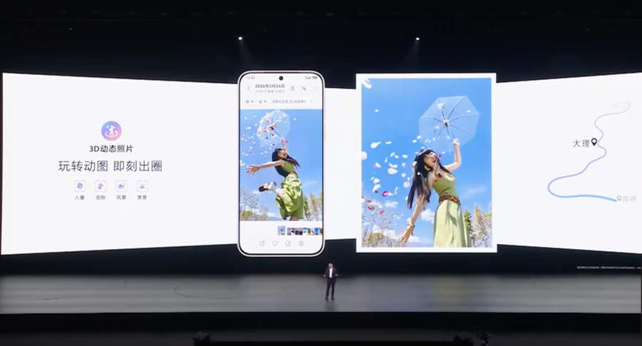 更具创新性的是,华为Pura 90系列支持3D动态照片功能,拍摄一张动态照片即可一键生成具有空间运镜效果的3D影像,实现从2D到3D的体验跨越,让滑雪腾空、猫咪跃起等高光瞬间更具冲击力。