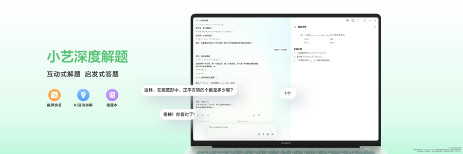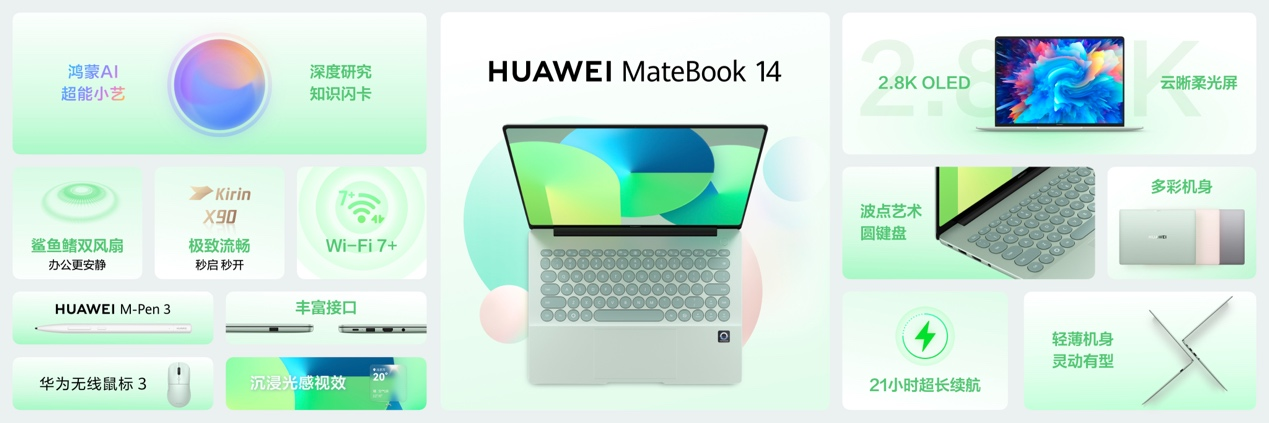 全新HUAWEI MateBook 14 鸿蒙版,是华为“以智慧重构生产力”理念的具象化成果。HarmonyOS 系统级智慧助手小艺,将AI 与操作系统深度融合,有更强大的感知、记忆与工具调度能力,技能拉满,进化为得力的生产力伙伴。“小艺深度研究”,引入百万级学术和行业资源、模拟专家思维、一键生成专业报告;“小艺深度解题”,以启发式讲解引导用户自主思考;“小艺帮记”,将零散的信息梳理为结构化知识,并生成知识闪卡帮助记忆……小艺,致力于将用户从繁琐的信息处理中解放,让创作、学习与研究更加高效、专注与自由。