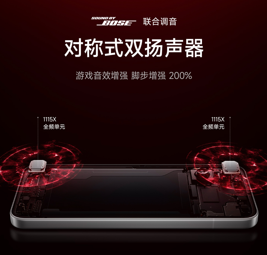 REDMI K90 Max围绕游戏体验进行全链路优化,配备1115X对称双扬声器,经过Bose联合调音,可将游戏脚步声增强200%,搭配新增的游戏麦,横屏游戏时语音沟通更清晰,听声辨位更精准。网络方面,搭载两颗小米澎湃T1+信号增强芯片,蜂窝性能平均提升25%,Wi-Fi及蓝牙性能平均提升32%,机身左右两侧7根竞技天线全频覆盖,有效避免横屏游戏时的信号遮挡问题。
