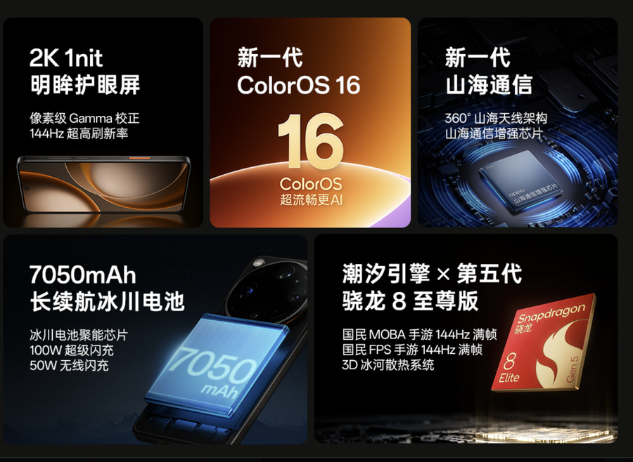 当然,作为旗舰机,它的综合体验也没有短板。性能上搭载了第五代骁龙8至尊版处理器,搭配LPDDR5X Ultra内存和UFS4.1闪存,不管是高负载的拍摄处理,还是大型游戏,都能流畅运行。屏幕用的是6.82英寸2K 144Hz LTPO自适应直屏,支持2160Hz PWM调光,流畅的同时还很护眼,户外峰值亮度做到了3600nit,大太阳底下取景也能看得清清楚楚。续航上内置7050mAh大容量电池,搭配100W有线快充和50W无线快充,就算是出门扫街拍一天,也不用慌续航。除此之外,IP68/IP69K满级防水防尘、3D超声指纹、对称双扬声器都一应俱全,部分版本还支持卫星通信,方方面面都安排到位。