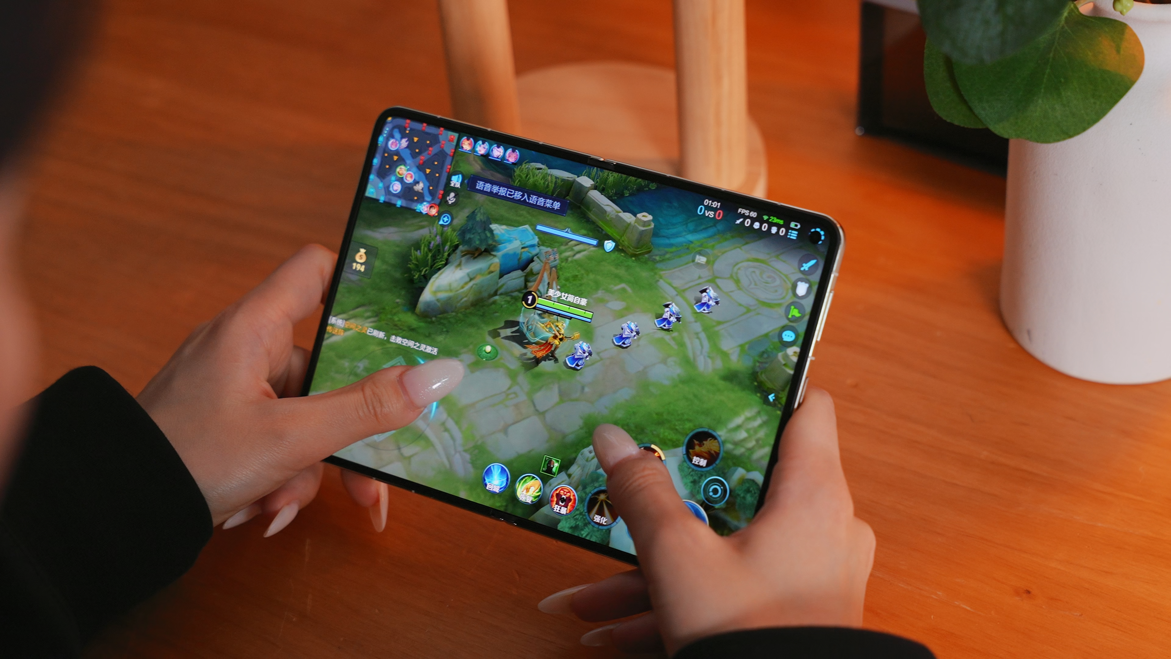 玩游戏简直是物理外挂,类似mini平板尺寸刚刚好,不像大平板那么难以掌控,《王者荣耀》视野多30%,对面来抓第 一眼就能看见;《和平精英》视野又大又广,很容易发现敌人。再加上它搭载的麒麟9030 Pro芯片,高帧率玩起来丝滑不卡顿,用它玩游戏真的回不去了。