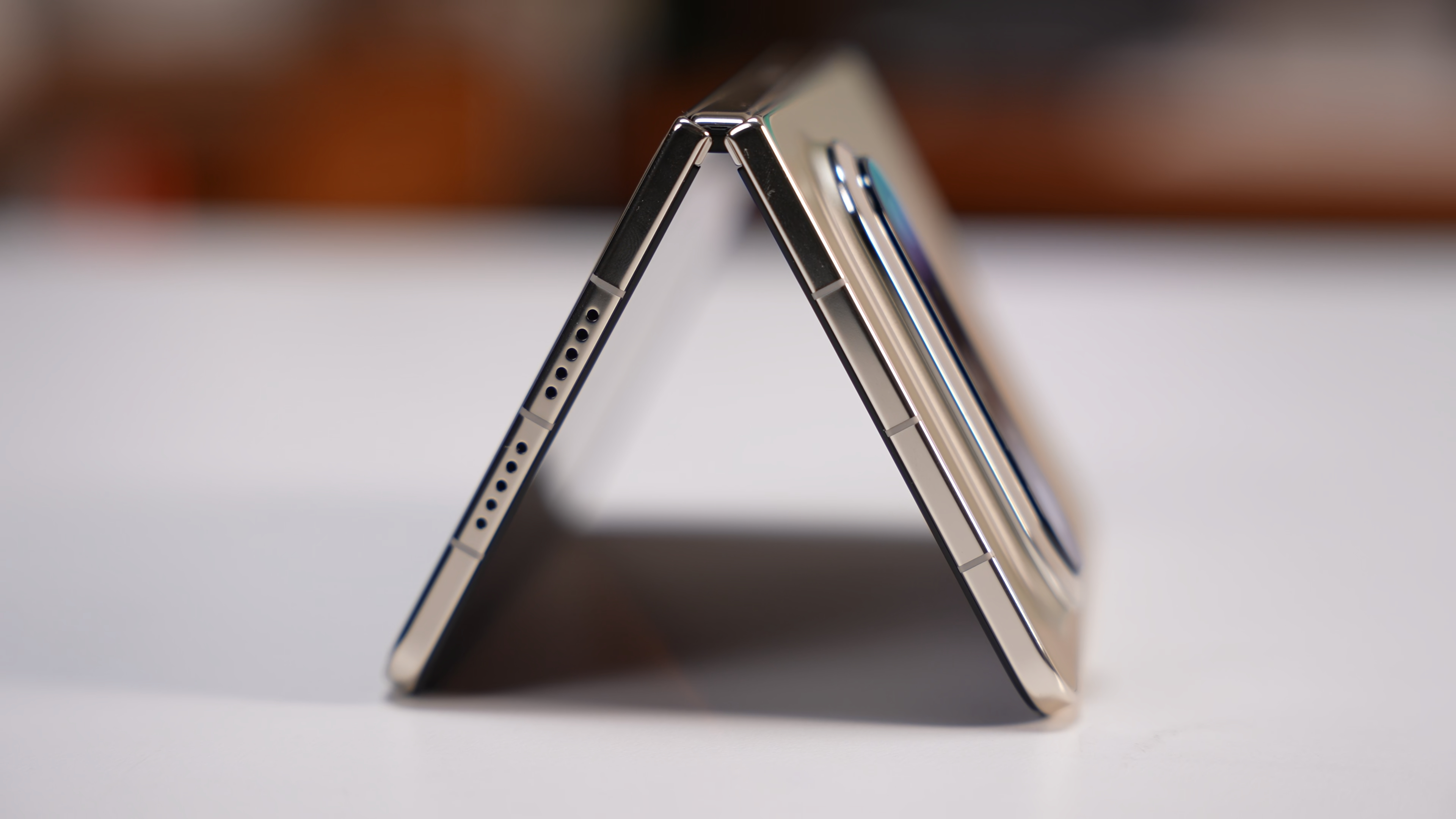 内屏使用了三重复合叠层结构,抗冲击比前代强不少,折痕控制玄武水滴铰链用了火箭钢材质,折痕很淡,开合手感丝滑,外屏还是第二代昆仑玻璃,耐摔耐刮,日常用完全不用小心翼翼。