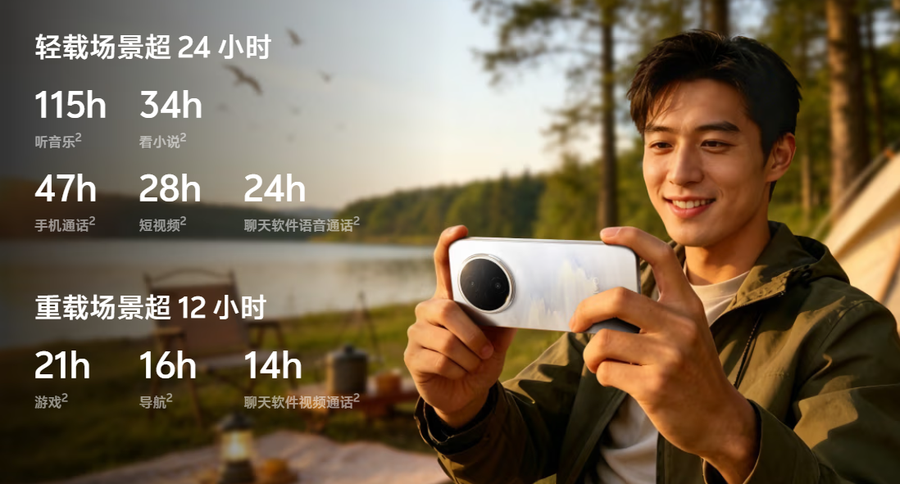 续航表现覆盖全场景使用需求,日常轻载状态下,可实现115小时音乐播放、47小时连续通话、34小时小说阅读,满足用户两天一充的日常需求。即便游戏、导航等重度使用场景,也能稳定长效输出。同时电池具备超强环境适配性,可在-20℃至40℃宽温环境稳定续航,-30℃超低温下仍可正常供电,无惧严寒酷暑户外使用,搭配16.7天超长待机能力,彻底告别电量焦虑。