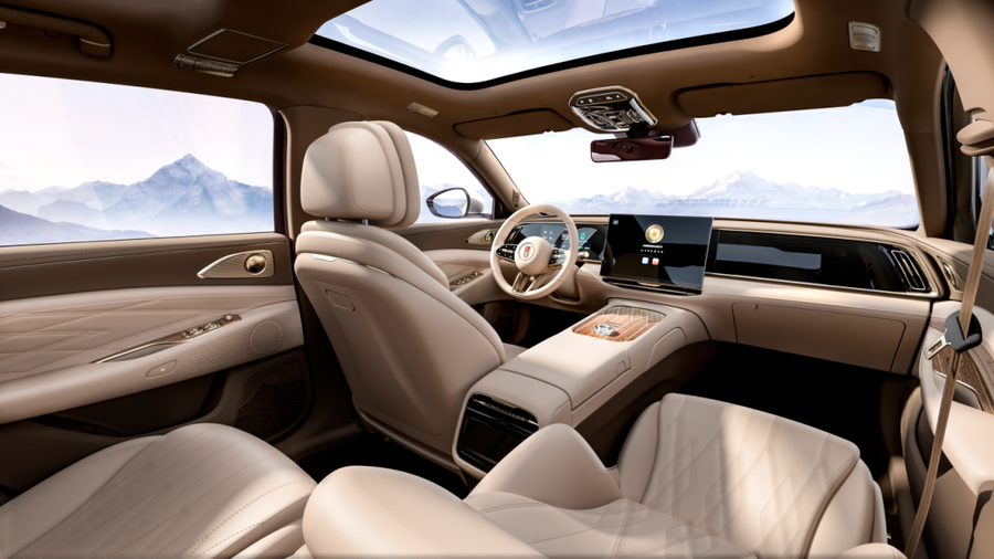 新车配置同步迎来升级,将搭载后轮转向系统,大幅提升大车行驶的操控稳定性与灵活性,据此推测,新车车长与轴距或将进一步加长,车长预计超过5.2米,轴距可达3.1米,进一步提升车内乘坐空间与舒适性。内饰方面全面焕新,采用鸿蒙座舱经典设计风格,配备全液晶仪表盘、悬浮式中控屏与副驾驶屏,搭配木纹饰板、菱形格皮质面料以及水晶装饰件,完美融合科技感与豪华质感。