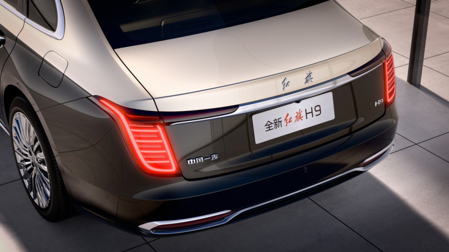 车身侧面体态修长,平直硬朗的腰线搭配多辐条豪华轮圈,完美凸显行政轿车庄重大气的视觉感受。尾部设计经过优化调整,整体造型更贴合传统三厢轿车,风格相比老款更加沉稳严肃,与红旗H9的产品定位高度契合。