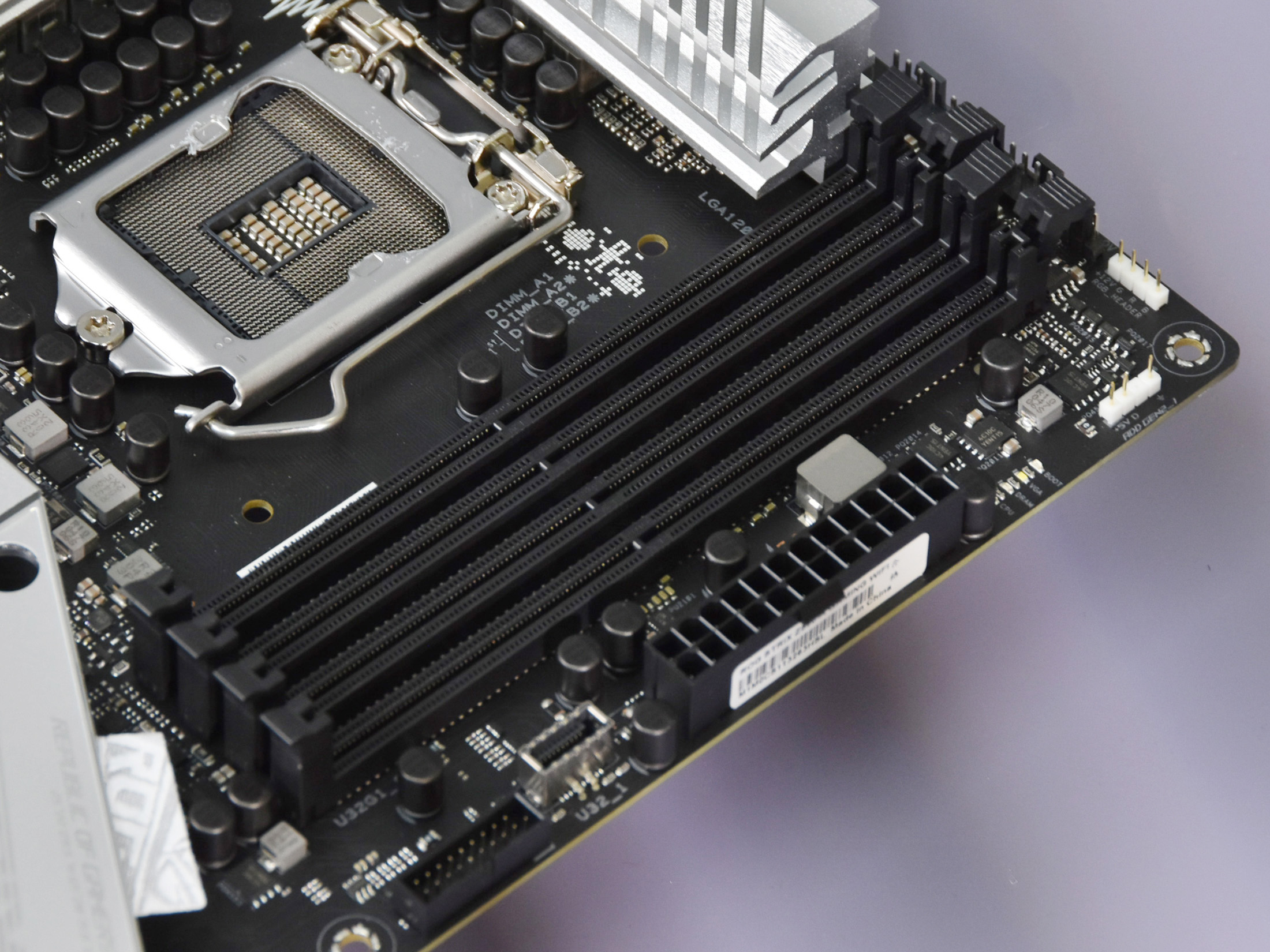 四根DDR4内存插槽,单根支持高达32GB的内存,四根合计就是128GB。同时,这款主板还采用了华硕OptiMem II第2代内存优化技术,独特的内存优化走线,能够提高信号完整性,减少干扰信号,进而提高内存的兼容性和超频空间,支持高达DDR4-5333MHz的内存超频频率。