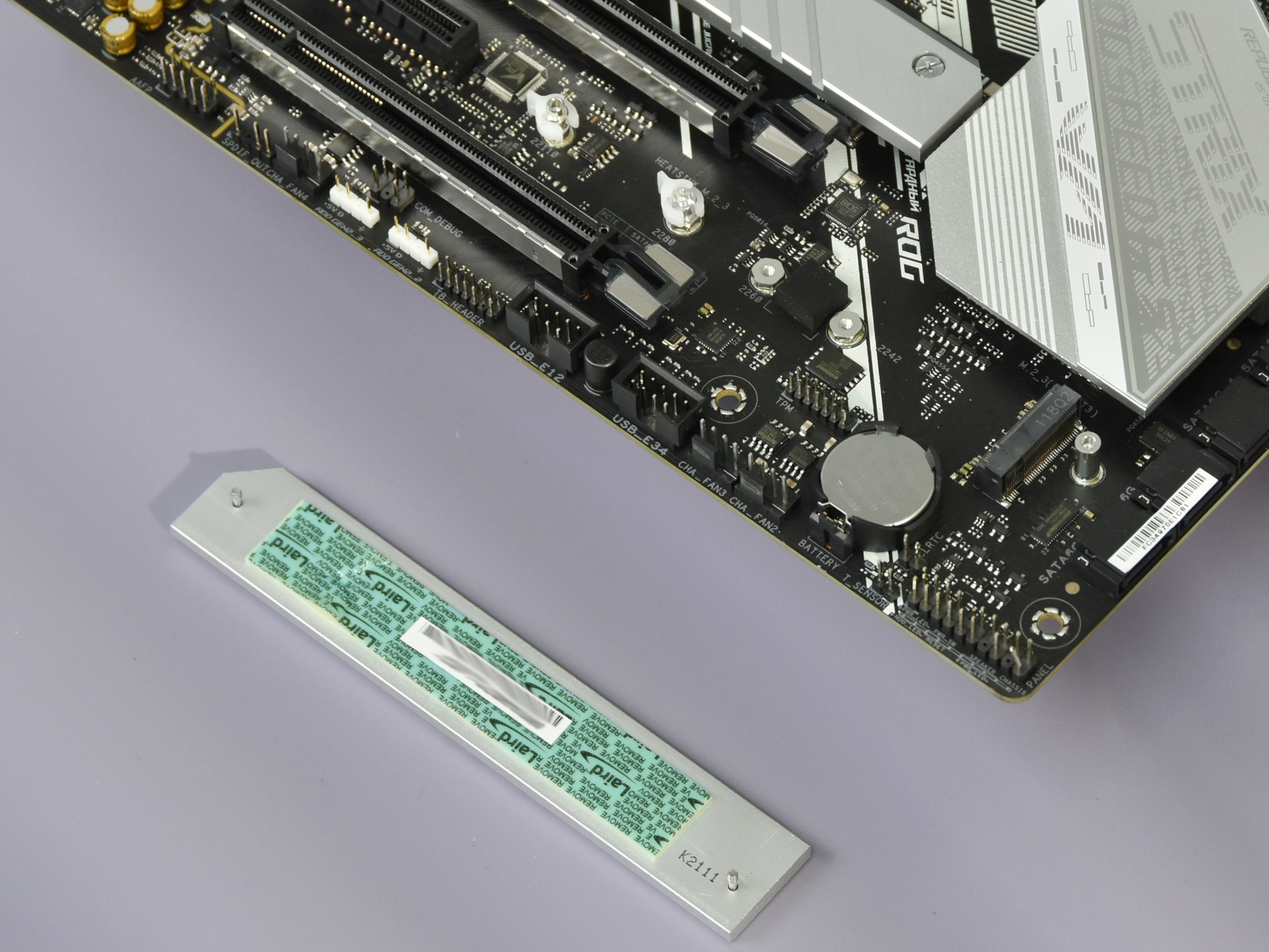 CPU供电区域设计了两块大尺寸的银白色散热片,能够为MOS管以及电感进行散热降温。