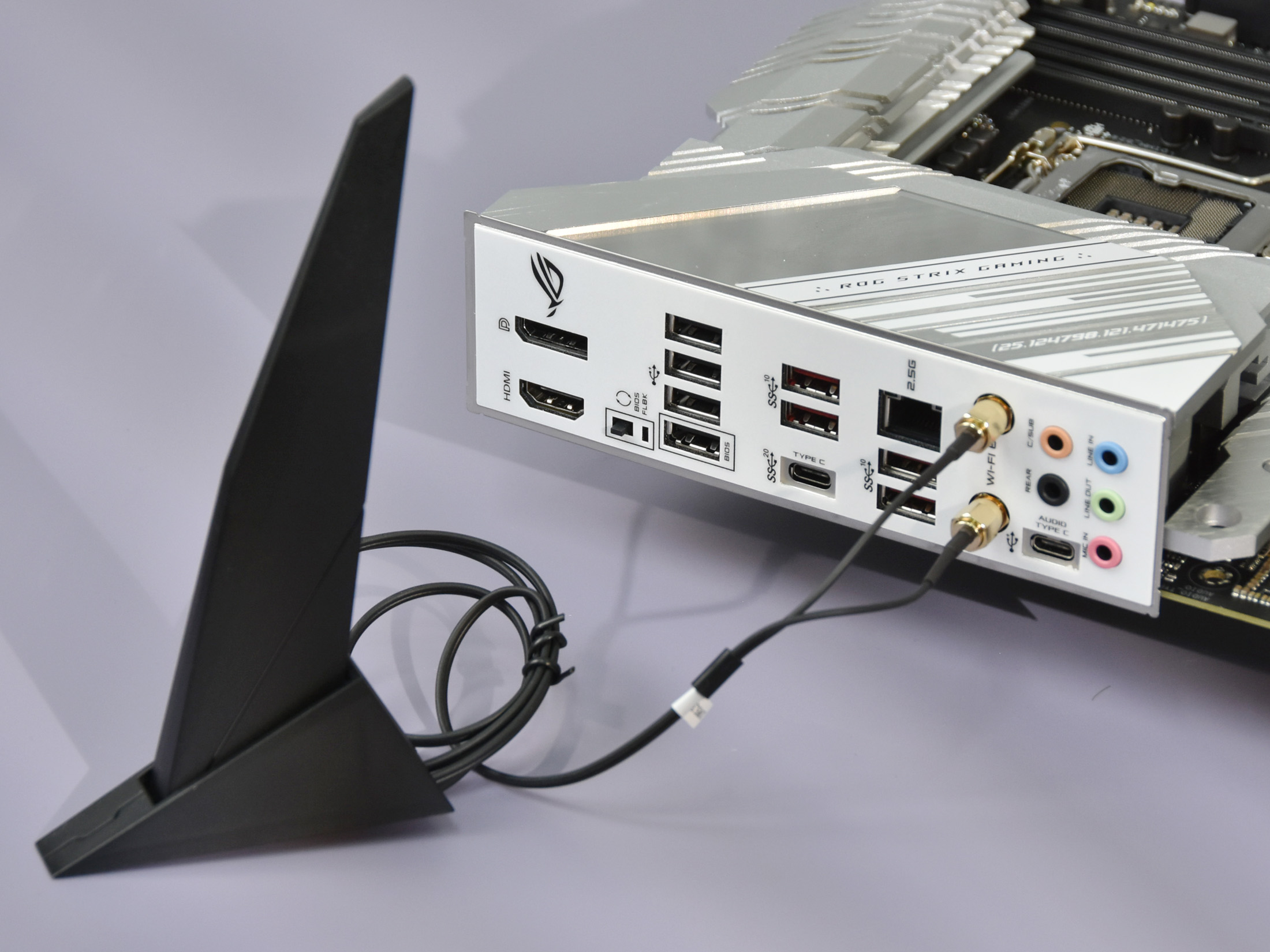 这款主板的网络配置也很强大,除了配备有2.5G有线网口之外,还配备了Intel WiFi 6 AX201无线网卡,随机附赠无线天线模块。